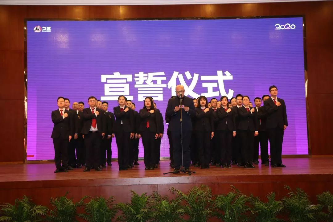 管理系统团队代表、生产系统团队代表、营销系统团队代表、青苗团队四大团队就2020总目标于现场激情宣誓。